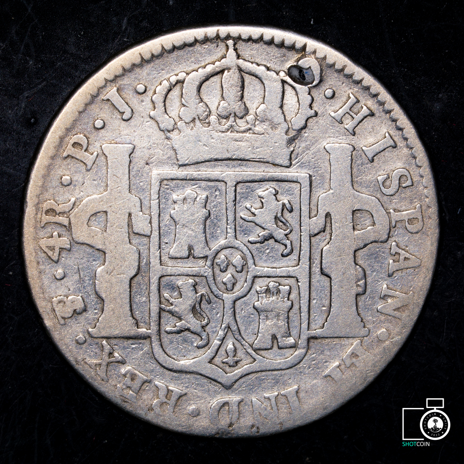 Bolivia, Potosí, 4 Reales 1808, perforada