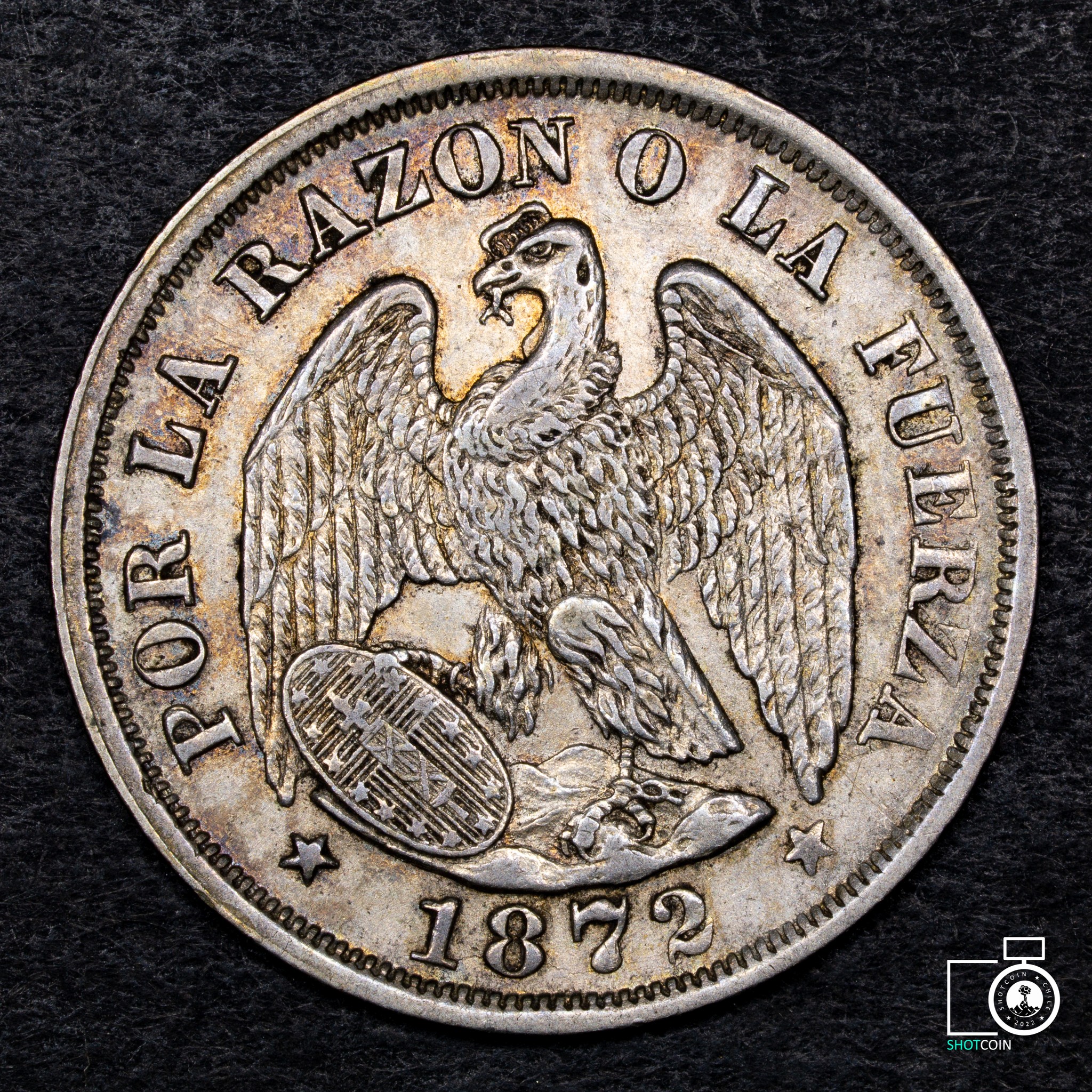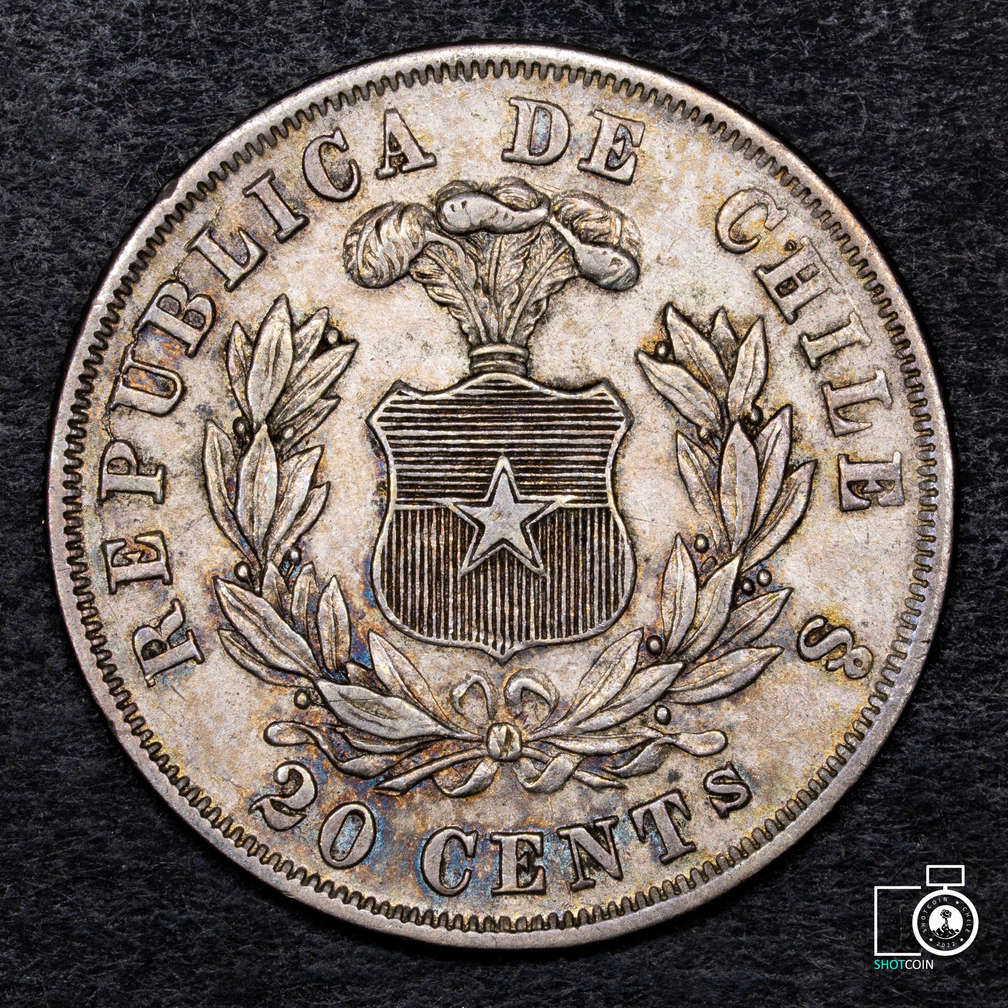 Chile, 20 Centavos 1872, linda tonificación