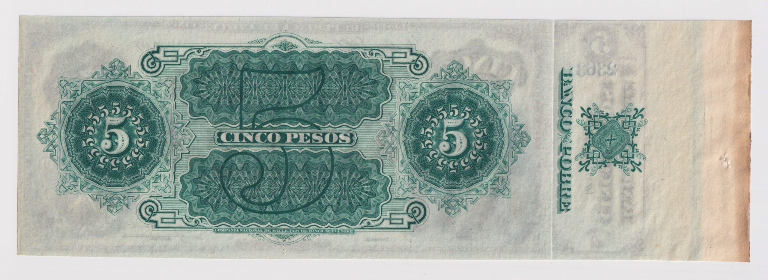 Chile, Billete remanente de Banco del Pobre, $5 con talón, año 187x #YY (IVA incluido)